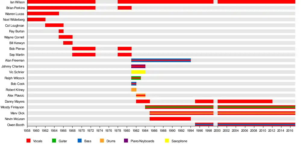 - Ian 'Peewee' Wilson – vocals (1958–1973, 1978–1998, 2000-present)