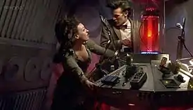 "The Doctor's Wife" was planned as the third episode in the 2011 series but the order was changed during the production process.[18] Initial production occurred in September, with Gaiman visiting the set during the production period and filming for the associated Confidential.[19] Additional filming took place in October 2010, with guest star Suranne Jones having been filmed for green screen special effects.[20] The scenes where Amy and Rory are on the run allowed the audience to explore the TARDIS outside the control room, something the producers had wanted to do for a while. A series of corridors was constructed and retained for future use.[21] The episode also featured the return of the older TARDIS control room from the Christopher Eccleston and David Tennant era. Gaiman had originally wanted to reconstruct a console room from the original series, but the cost proved prohibitive.[21] The set was retained after filming for "The Eleventh Hour", but has since been removed to become part of the Doctor Who Experience exhibit.[3][22] Actor Arthur Darvill noted the floor of the older set had a cheese grater-like quality to it, so when the scene called for the cast to fall on it, they found it uncomfortable to stay down for a long period of time.[10]