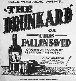 The Drunkard; or, The Fallen Saved is an American temperance play first performed on February 12, 1844.[1][2] A drama in five acts, it was perhaps the most popular play produced in the United States until the dramatization of Uncle Tom's Cabin [3] premiered in 1853. In New York City, P.T. Barnum presented it at his American Museum in a run of over 100 performances.[4] It was among the first of the American temperance plays, and remained the most popular of them until it was eclipsed in 1858 by T. S. Arthur's Ten Nights in a Bar-Room.[3]