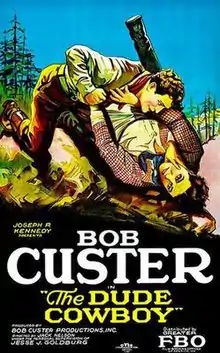 The Dude Cowboy is a 1926 American silent Western film directed by Jack Nelson and written by Paul M. Bryan. The film stars Bob Custer, Flora Bramley, Billy Bletcher, Howard Truesdale, Bruce Gordon and Amber Norman. The film was released on October 31, 1926, by Film Booking Offices of America.[1][2][3]