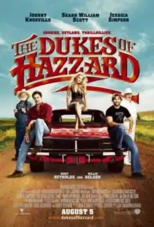 The Dukes of Hazzard is a 2005 American action comedy road film loosely based on the television series of the same name. The film was directed by Jay Chandrasekhar and released on August 5, 2005, by Warner Bros. Pictures. As in the television series, the film depicts the adventures of cousins Bo, Luke, and Daisy, and their Uncle Jesse, as they outfox crooked Hazzard County Commissioner Boss Hogg and Sheriff Rosco P. Coltrane.