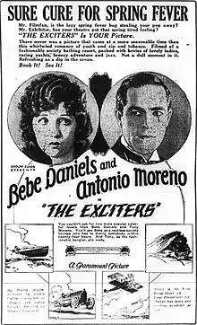 The Exciters is a lost[1] 1923 American silent romantic comedy film produced by Famous Players-Lasky and distributed through Paramount Pictures. It is based on a 1922 Broadway play of the same name by Martin Brown. This film was directed by Maurice Campbell and stars Bebe Daniels, then a popular Paramount contract star.[2][3] On the Broadway stage, Bebe Daniels's role was played by Tallulah Bankhead.[4]