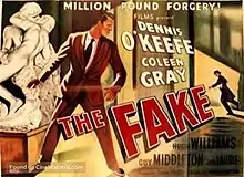 The Fake is a 1953 British crime film directed by Godfrey Grayson and starring Dennis O'Keefe, Coleen Gray and Hugh Williams.[1] Its plot concerns an American detective who tries to solve the theft of a priceless painting from the Tate Gallery in London.[2]