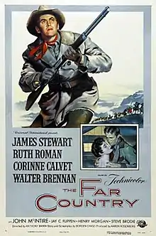 The Far Country is a 1954 American Technicolor Western film directed by Anthony Mann and starring James Stewart, Ruth Roman, Walter Brennan, John McIntire and Corinne Calvet. Written by Borden Chase, the film is about a self-minded adventurer who locks horns with an evil, corrupt judge while driving cattle to Dawson, Yukon Territory. It is one of the few Westerns to be set in Alaska—others include The Spoilers and North to Alaska -- although it was not filmed there.[4] This was the fourth Western film collaboration between Anthony Mann and James Stewart.