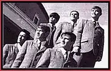 Formed in 1966, the band was originally known as the Playmates and included Victor Roybal (organ), Eddie Roybal (drums), Mike Layden (lead guitar), Joe Abeyta (rhythm guitar, backing vocals) and Ernie Gonzales (bass guitar). The group soon recruited Danny Houlihan (lead vocals) and replaced Abeyta with Eddie James, who already had experience performing with the Champs.[1] With the addition of two members, the Playmates decided a name change was in order. It was initially suggested by Houlihan to rechristen the group the Fe-Fi-Fo-Fum, the phrase said by the giant in the fairy tale "Jack and the Beanstalk". However, feelings toward the proposal were split and, as a compromise, they agreed on the Fe-Fi-Four Plus 2 (the total number of band members).[2]