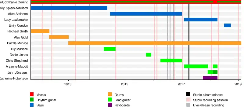 - Danie Centric (formerly Cox) – vocals September 2011 – present, guitar September 2011 – February 2018 and April 2018 – present