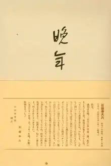 The Final Years (Japanese: 晩年, Hepburn: Bannen) is a Japanese short story collection written by Osamu Dazai and was published in 1936.[1] It was Dazai's first published book, composed of fifteen previously published short stories, and was completed ten years after Dazai first decided to become a writer.[2]