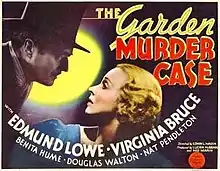 The Garden Murder Case is a 1936 mystery/drama, the tenth in the Philo Vance film series, following after 1935's The Casino Murder Case. In this entry to the series, Vance is played by Edmund Lowe, and Virginia Bruce co-stars. The film also features Benita Hume, Douglas Walton, and Nat Pendleton. It was directed by Edwin L. Marin from a screenplay by Bertram Millhauser based on the 1935 book of the same name by S. S. Van Dine.