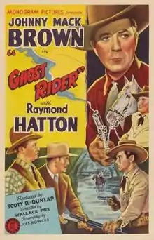 The Ghost Rider is a 1943 American Western film directed by Wallace Fox and written by Adele Buffington. This is the first film in the "Marshal Nevada Jack McKenzie" series, and stars Johnny Mack Brown as Jack McKenzie and Raymond Hatton as his sidekick Sandy Hopkins, with Harry Woods, Beverly Boyd, Tom Seidel and Edmund Cobb. The film was released on April 2, 1943, by Monogram Pictures.[1][2][3]