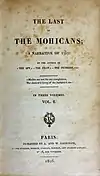 1826 The Last of the Mohicans James Fenimore Cooper Although De Forest critiqued Cooper's writing as boring, many consider The Last of the Mohicans to be the first GAN. It was influential in defining American literature and addresses themes which are common in later American works, including rugged individualism and freedom. [40][41]