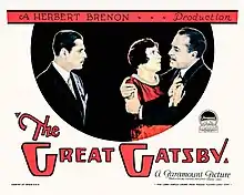 The Great Gatsby is a 1926 American silent drama film directed by Herbert Brenon.[1] It was the first film adaptation of the 1925 novel of the same name by F. Scott Fitzgerald. Warner Baxter portrayed Jay Gatsby and Lois Wilson portrayed Daisy Buchanan.[2]