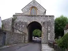 Excavation in the 1990s showed that the gateway and chapel had been built on the site of a Saxon bank around the town.[3] The archway is all that remains of the east gate of the defended town. The archway which goes over the former main road takes the form of a pointed barrel vault.[4]