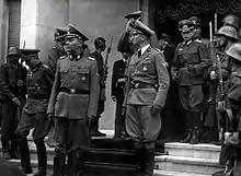 To assist in the fight against the growing Partisan-led resistance in Serbia, the German military set up an entirely subservient, collaborationist administration, with limited power, under Milan Nedić.[36] While the Germans fully directed the Holocaust in Serbia, and carried out the mass-killing of Jews,[37][17] collaborationist forces assisted in a number of ways. At German command the quisling Special Police registered Jews, and enforced Nazi regulations, like wearing of yellow stars.[38] Later the German military performed mass round-ups of Jews to take them to concentration camps,[39][20] but relied on quisling forces to find and capture Jews who managed to elude the round-ups. Thus from 1942 to 1944 collaborationist forces captured and turned over at least 455 Jews to the Germans.[40] Some Jews who hid in the countryside were killed and robbed by Chetniks.[41]
