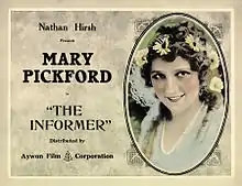 The Informer is a 1912 American dramatic short film directed by D. W. Griffith and featuring Mary Pickford, Henry B. Walthall, Harry Carey, Lionel Barrymore, Dorothy Gish and Lillian Gish. It was filmed in the Pike County town of Milford, Pennsylvania.[1] Prints of the film survive at the film archive of the Library of Congress.[2][3]