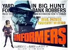 The Informers (US title - Underworld Informers) is a 1963 British crime film produced and distributed in the UK by The Rank Organisation and distributed in the USA by Continental Film Distributors. It was directed by Ken Annakin and produced by William MacQuitty, with the screenplay by Paul Durst and Alun Falconer from the novel Death of a Snout by Douglas Warner. It stars Nigel Patrick, Margaret Whiting, Harry Andrews, Derren Nesbitt and Colin Blakely. Cinematography was by Reginald H. Wyer. It was filmed at Pinewood Studios and on location in London.