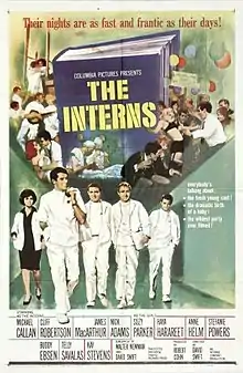 The Interns is a 1962 American drama film directed by David Swift and starring Michael Callan, Cliff Robertson, James MacArthur, Nick Adams, Haya Harareet and Suzy Parker.[2] The film was followed by a 1964 sequel, The New Interns, and a 1970–1971 television medical drama series, The Interns, that was based on the films. The Interns was directed by David Swift.[2]