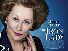 The Iron Lady is a 2011 biographical drama film based on the life and career of Margaret Thatcher, a British politician who was the longest-serving Prime Minister of the United Kingdom of the 20th century and the first woman to hold the office.[5] The film was directed by Phyllida Lloyd and written by Abi Morgan. Thatcher is portrayed primarily by Meryl Streep,[6] and, in her formative and early political years, by Alexandra Roach. Thatcher's husband, Denis Thatcher, is portrayed by Jim Broadbent, and by Harry Lloyd as the younger Denis. Thatcher's longest-serving cabinet member and eventual deputy, Geoffrey Howe, is portrayed by Anthony Head.[7]