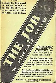 The Job is an early work by American novelist Sinclair Lewis. It is considered an early declaration of the rights of working women. The focus is on the main character, Una Golden, and her desire to establish herself in a legitimate occupation while balancing the eventual need for marriage. The story takes place in the early 1900-1920s and takes Una from a small Pennsylvania town to New York. Forced to work due to family illness, Una shows a talent for the traditional male bastion of commercial real estate and, while valued by her company, she struggles to achieve the same status of her male coworkers.