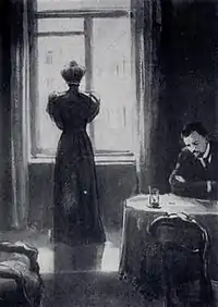 The story has also been adapted for stage; for example, an adaptation by Peter Campbell was featured at the 2002 Chekhov Now Festival in New York.[18] A play titled Sunstroke, directed by Oleg Mirochnikov, combines The Lady with the Dog with Ivan Bunin's Sunstroke. The play was performed in 2013 at the Platform Theatre in London.[19] An opera version titled "The Lady with the Pet Dog" was premiered at Cornell College in Mount Vernon, Iowa in 2010.[20]