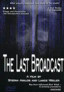 The Last Broadcast is a 1998 American horror film written, produced and directed by Stefan Avalos and Lance Weiler, who also star in the film.[3] Told in a mockumentary format and employing the found-footage technique, the fictional film appears to tell the story of a man convicted in 1995 of murdering his team of people one night during an expedition to find the mythic Jersey Devil in the New Jersey Pine Barrens.