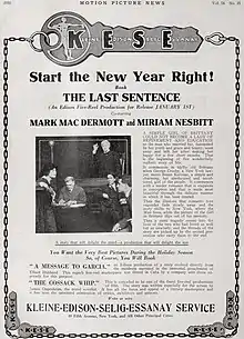 The Last Sentence is a 1917 American silent drama film directed by Ben Turbett and starring Marc McDermott, Miriam Nesbitt and Herbert Prior.[1]