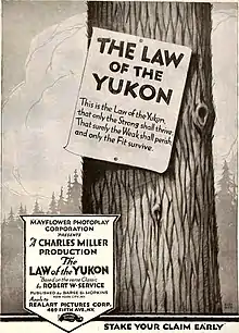 The Law of the Yukon is a 1920 American silent drama film inspired by the poem, The Law of The Yukon, by Robert W. Service. The film was directed by Charles Miller, and stars June Elvidge and Edward Earle.[1][2] Portions of the movie were filmed at the Artic City studio in Port Henry, New York.[3]