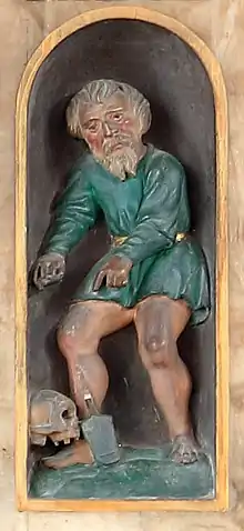 The quartet of figurines sculptured in marble, Pax, Gloria, Vanity, Labor exhibit primary thematic concerns and stylistic attributes of Northern Mannerist art, namely, portraiture of animated human movement, variety and multiplicity, often set in the Classical or mythological world, and inclined towards esoteric concepts.[1]