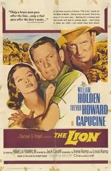 The Lion is a 1962 British-American adventure film in CinemaScope directed by Jack Cardiff, starring William Holden and Trevor Howard. Filmed on location in Kenya and Uganda and on a property in Kenya co-owned by Holden, the Mount Kenya Safari Club.[1]