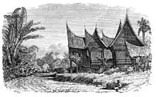 The Malay Archipelago was largely written at Treeps, Wallace's wife's family home in Hurstpierpoint, West Sussex.[5] It was first published in Spring 1869 as a single volume first edition, however was reprinted in two volumes by Macmillan (London), marked second edition the same year by Harper & Brothers (New York). Wallace returned to England in 1862, but explains in the Preface that given the large quantity of specimens and his poor health after his stay in the tropics, it took a long time. He noted that he could at once have printed his notes and journals, but felt that doing that would have been disappointing and unhelpful. Instead, therefore, he waited until he had published papers on his discoveries, and other scientists had described and named as new species some 2,000 of his beetles (Coleoptera), and over 900 Hymenoptera including 200 new species of ant.[P 6] The book went through 10 editions, with the last published in 1890.[6] It has been translated into at least twelve languages.[7]