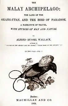 The book is dedicated to Charles Darwin, but as Wallace explains in the preface, he has chosen to avoid discussing the evolutionary implications of his discoveries. Instead he confines himself to the "interesting facts of the problem, whose solution is to be found in the principles developed by Mr. Darwin",[P 2] so from a scientific point of view, the book is largely a descriptive natural history. This modesty belies the fact that while in Sarawak in 1855 Wallace wrote the paper On the Law which has Regulated the Introduction of New Species, concluding with the evolutionary "Sarawak Law", "Every species has come into existence coincident both in space and time with a closely allied species", three years before he fatefully wrote to Darwin proposing the concept of natural selection.[4]