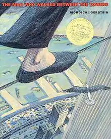 The Man Who Walked Between the Towers is a children's picture book written and illustrated by American Mordicai Gerstein. Published in 2003, the book recounts the heart-stopping achievement of Philippe Petit, a French man who, on an August morning in 1974, walked, lay, knelt and danced on a tightrope wire between the roofs of the twin towers of the World Trade Center, a quarter mile above the ground. Gerstein won the 2004 Caldecott Medal for his illustrations.[1] The book has been adapted to film and ballet.