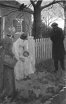 When the story was published in Twice-Told Tales, an anonymous reviewer in the Boston Daily Advertiser for March 10, 1837, noted that he preferred "the grace and sweetness of such papers as 'Little Annie's Ramble,' or 'A Rill from the Town-pump,' to those of a more ambitious cast, and in which the page glows with a wider and more fearful interest, like 'The Minister's Black Veil' and 'Dr. Heidegger's Experiment.'"[18] Edgar Allan Poe offered a few critiques of Nathaniel Hawthorne's tales. Hawthorne received a mixed review from Poe, who writes that "high imaginations gleam from every page". He notes, however, that versatility is lacking in Hawthorne's tone and character development. Poe claims that Hawthorne is a man of "truest genius" but needs to work on subject areas of his writing. In his review of Twice-Told Tales, Poe also reveals a disdain for allegory, a tool which Hawthorne uses extensively.[19]