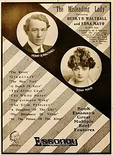 The Misleading Lady is a 1916 American silent comedy film directed by Arthur Berthelet and starring Henry B. Walthall, Edna Mayo and Sidney Ainsworth. It is an adaptation of the play of the same title by Paul Dickey and Charles W. Goddard which has been made into films on several occasions.[1] It marked the screen debut of Edward Arnold.