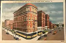 The Monticello Hotel was an historic hotel built in 1898 on Monticello Avenue in Norfolk, Virginia. The original hotel was destroyed by a fire on New Year's Day in 1918, a day so cold that the water from the fire equipment froze before it could reach the fire.[1] The hotel was rebuilt in 1919, with two additional stories added, and operated until it was demolished in 1976 as part of Norfolk's ongoing urban renewal project.