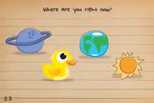 Old School was the only section of the game included at the launch of the iOS version of the Moron Test. Players must carefully follow the instructions written on digital index cards to progress. The objects that are used in this section are elementary school themed, featuring planets and math symbols. In this section of the Moron Test, the Rubber Duck, the Bee, the Mouse, and the Angry Duck are introduced.