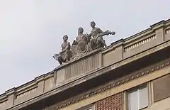 The Music (also known as The Music Group, Polish: Muzyka, Grupa Muzyka) is one of three sculptures[1] located on the roof of the building on Koszykowa Street 34/50 in Warsaw since 1952. The project was chosen after an artistic competition. The monument was designed by Józef Gosławski, but his wife - Wanda - and his brother - Stanisław - helped him with its realization because of the short deadline. Lack of scaffolds, problems with obtaining funds and the short deadline forced the artists[2] to write a letter to the chief architect of Warsaw - Józef Sigalin. After that, the conditions were improved and work was completed on time.[3]