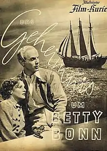 The Mystery of Betty Bonn (German: Das Geheimnis um Betty Bonn) is a 1938 German adventure film directed by Robert A. Stemmle and starring Maria Andergast, Theodor Loos and Hans Nielsen.[1] It was made by the leading German studio UFA, based on a novel by Friedrich Lindemann. A British attorney working on a small island wants to return home to London, but first has to solve a mysterious crime.