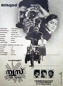 The News is a 1989 Malayalam-language Indian mystery thriller film written by Jagadish and directed by Shaji Kailas and produced by G.R.Sureshkumar, starring Suresh Gopi, Ranjini, Lizy and Babu Antony.[1] This is the debut release of Shaji Kailas. The film was a landmark in Suresh Gopi's career as it was one of Suresh Gopi's first commercially successful films as a solo hero.[2]