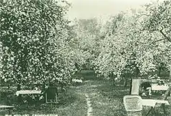The Orchard is a tea room and tea garden in Grantchester, near Cambridge, serving morning coffee, lunches and afternoon teas. Since opening in 1897, it has been a popular retreat for Cambridge students, teachers and tourists, as well as locals, with many famous names among its patrons. The Orchard is open every day of the year (with the exception of some days around Christmas) from 9:30 to 17:00, and can be reached both by road and punt.