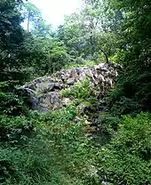 The Hallett Nature Sanctuary is the smallest of Central Park's wooded area at 4 acres (1.6 ha).[2] Originally known as the Promontory,[3] it is the only permanently fenced-off section of Central Park aside from Jacqueline Kennedy Onassis Reservoir, occupies 3.5 acres (14,000 m2) of the wooded promontory to the west of the Pond, jutting into the water body. The area was closed in 1934 when NYC Parks commissioner Robert Moses set the site apart as a bird sanctuary. In the 1980s, after decades of neglect, invasive alien plants like ailanthus and Far Eastern wisterias were extirpated, and the equally invasive though native black cherry was thinned, the woodland was enriched with native shrubs.[4] The reserve was renamed in 1986, in honor of George Hervey Hallett Jr. (1895–1985), an ardent birdwatcher and naturalist and executive secretary of the Citizens Union.[5][6] The Hallett Sanctuary was reopened to the public in 2016, when the Central Park Conservancy started allowing visitors to enter the sanctuary during middays.[3]