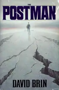 The Postman is a post-apocalyptic dystopia science fiction novel by David Brin. It is about a man wandering the desolate Oregon countryside who finds a United States Postal Service uniform, which he puts on and then claims he is a mail carrier and federal inspector for the "Restored United States of America". His mail service and claims about the return of a central government gives hope to the people, who are threatened by a murderous, neofascist militia.