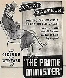 The Prime Minister is a British 1941 British historical drama film directed by Thorold Dickinson and starring John Gielgud, Diana Wynyard, Fay Compton and Stephen Murray.
