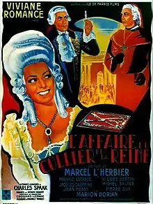 The Queen's Necklace (French: L'affaire du collier de la reine) is a 1946 French historical drama film directed by Marcel L'Herbier and starring Viviane Romance, Maurice Escande and Jacques Dacqmine.[1] The film portrays the Affair of the Diamond Necklace which damaged the reputation of the French queen Marie Antionette during the 1780s.