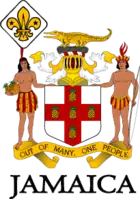 ![]() The Scout emblem incorporates the coat of arms of Jamaica | |||