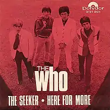Released in the UK as track 604036 on 21 March 1970, "The Seeker" reached number 19 in the charts. Released in the US as Decca 7-32670, it hit the Billboard charts on 11 April 1970, eventually peaking at number 44.[5] The B-side, "Here for More", is one of the few Who songs written by lead singer Roger Daltrey.