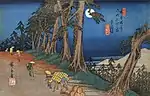 The Sixty-nine Stations of the Kiso Kaidō (木曾街道六十九次, Kiso Kaidō Rokujūkyū-tsugi) or Sixty-nine Stations of the Kiso Road, is a series of ukiyo-e works created by Utagawa Hiroshige and Keisai Eisen. There are 71 total prints in the series (one for each of the 69 post stations and Nihonbashi; Nakatsugawa-juku has two prints).