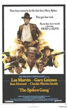 The Spikes Gang is a 1974 American Western film directed by Richard Fleischer and starring Lee Marvin. Produced by the Mirisch Company and based on the novel The Bank Robber by Giles Tippette, the supporting cast features Gary Grimes, Charles Martin Smith and Ron Howard. Veteran character actors Arthur Hunnicutt and Noah Beery, Jr. both appear in separate "scene-stealing" performances.[1]