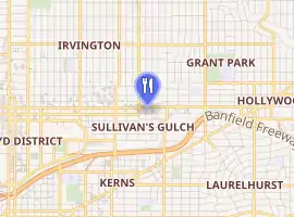 Located at 25th Avenue and Broadway in northeast Portland's Sullivan's Gulch neighborhood, The Sports Bra is an LGBTQ-owned bar focused on women's sports.[2] The menu includes burgers, buffalo wings, and Vietnamese-style baby back ribs.[3] Jaylon Thompson of USA Today has called the business "a unique concept" with an owner who "aims to build community, empower and promote women in sports".[4] The all-ages bar hosts official Portland Thorns viewing parties.[3] According to Erin Rook of LGBTQ Nation, The Sports Bra "may be the world's first women's sports bar".[5] Similarly, Lizzy Acker of The Oregonian said the business "might be the only women's sports bar in the world".[6]