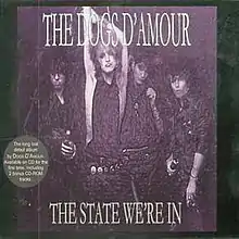 The State We're In is rock band The Dogs D'Amour's debut studio album, released in 1984. The album was produced in Finland and released on Finnish label Kumibeat Records. It was re-released in 2003, with a mix different from the one released in '84 (Tyla did not like the keyboards the producer overdubbed on the original mix, against the band's will).