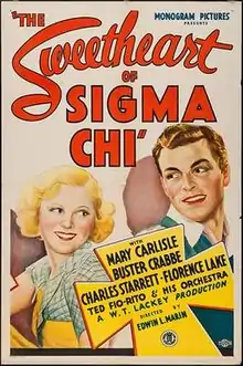 The Sweetheart of Sigma Chi is a 1933 American comedy film directed by Edwin L. Marin and written by Luther Reed and Albert DeMond. The film stars Mary Carlisle, Buster Crabbe, Charles Starrett, Florence Lake, Eddie Tamblyn and Sally Starr. The film was released on October 26, 1933, by Monogram Pictures.[1][2][3]